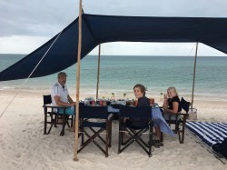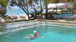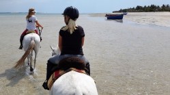 Det la förstås lite sordin på stämningen, men vi fick göra det bästa av situationen genom att utnyttja så många som möjligt av de alla de aktiviteter som ingick i priset, förutom att bara lata oss vid poolen och mata på med öl och läsk från gratisbaren. Vi började med att göra en ”island drive”, en intressant biltur runt ön med ett öppet, fyrhjulsdrivet fordon, genom byar och planteringar, över öns fotbollsplan där det var matcher varje söndag, och vi stannade på stranden på öns motsatta sida och klättrade i sanddynerna. Sen for vi iväg med hotellets katamaran till en öde strand på öns nordspets för vad de kallade en ”castaway picknick” – en picknick för ”skeppsbrutna”. Där hade de ställt i ordning lunch åt oss och lagt ut madrasser att vila på, men det blåste som tusan och var inte så behagligt som det kunde ha varit. Dessutom hade den andra av öns resorter ett liknande sällskap några hundra meter bort, så så värst öde var det ju inte. Jag fortsatte sen med båten ut till ett korallrev en bit ut i havet för att snorkla med färgglada fiskar. Platsen kallades inte för inte för ”the Aquarium”. Sista dagen, innan helikoptern tog oss tillbaka till fastlandet, passade Stella och jag på att göra en ridtur längs stranden. Jag hade dock en kille som höll i min hästs ”koppel” hela tiden, medan Stella och ledaren Charlotte travade i väg för sig själva. Då hade ju LAM fortfarande inte återupptagit flighten mellan Maputo och Vilanculos, men tack vare heroiska ansträngningar från en av hotellets managers så lyckades de omboka Karin och barnen så att de kunde flyga omvägen över Johannesburg till Maputo med ett annat bolag. Själv var jag ju tvungen att köra tillbaks bilen…