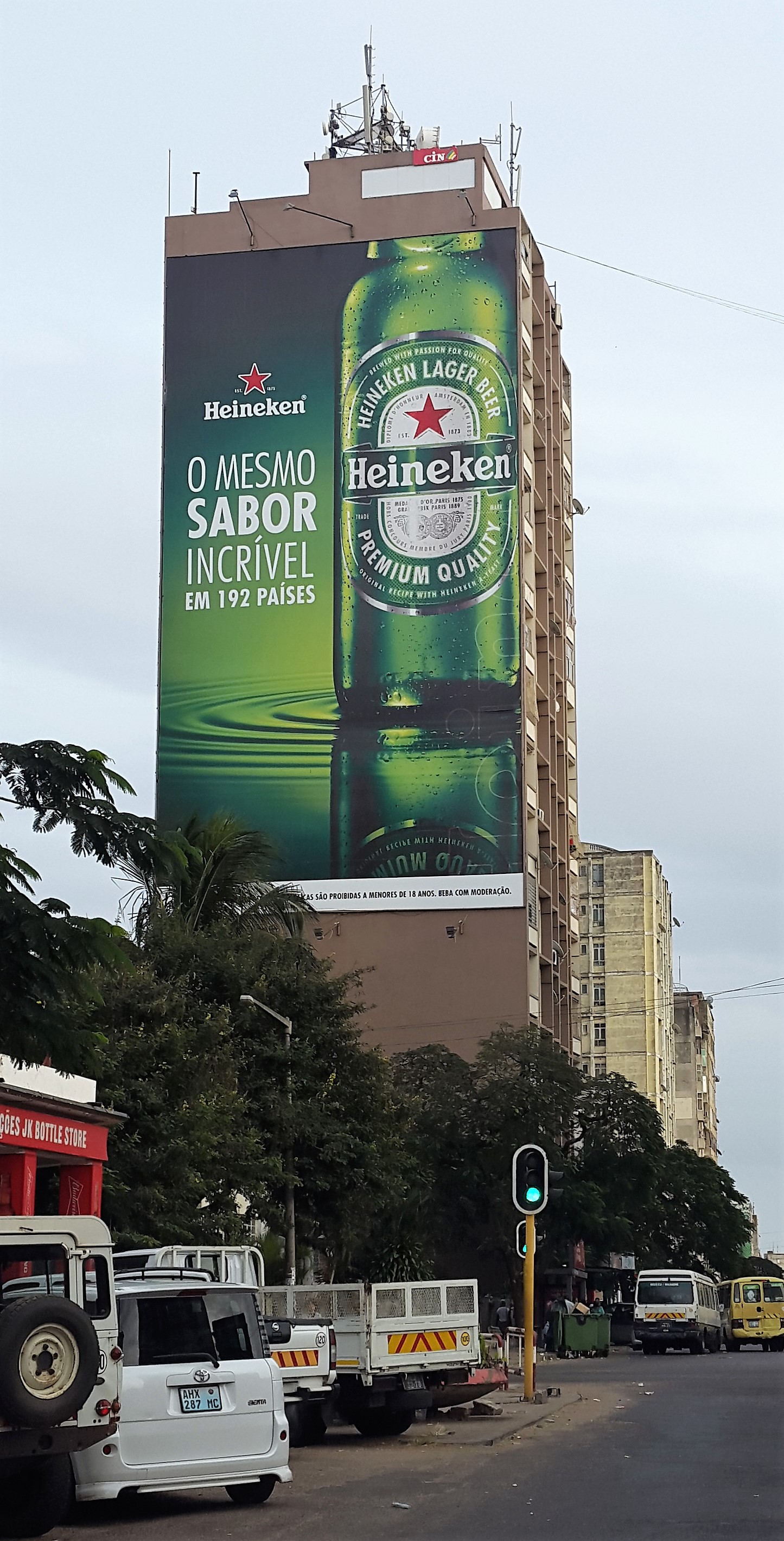 Kampen mellan bryggerijättarna märks ute på stan också, där de konkurrerar om folkets uppmärksamhet. Såväl mindre billboards som reklamtavlor som täcker hela huskroppar är tapetserade med deras respektive annonser med förföriska bilder och klatschiga slogans. Medan CDM-ölen tidigare haft mer eller mindre ohotad dominans bland barernas ölkranar har Heineken gjort en kraftig inbrytning. Så gott som alla Maputos mer respektabla barer och restauranger har numera braskande skyltar med Heinekens röda stjärna. De tycks ha fått en närmast oändlig marknadsföringsbudget för att kunna sno åt sig andelar. Lite kul är att på barnens skola känner vi både en holländsk familj utsänd av Heineken och en sydafrikansk familj utsänd av SABMiller. Ingen fiendskap dem emellan dock.